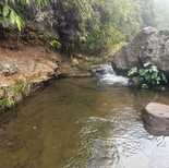 Boulder hopping and climbing, you need to get up the stream. I do this while throwing my fly in a shallow pool, hoping for some strike. I felt what seemed like a strike several times but could not confirm it. I climb over a wall of boulders and stumble on the most beautiful tropical oasis I have ever seen, a 50-yard trout pool resembling a waterfall screen from Jurassic Park. Jurassic Park was partly filmed in Kauai. This trout section is perfectly lined with tropical fauna, crystal clear water, and a possible trout along the way. The water was super deep. After fishing in pools only 2-3 feet deep, this water was far over my head. I approached a massive boulder in the water to stand on, flicking my trout wand back and forth and laying it into the water as I waded. I stumbled and fell into the water above my waist. Fish on! I am fighting a much larger trout with one hand on the rod and the other on my wader stick, so I don't fall over my head. The unthinkable, I took my finger off the fly rod, why I don't know, and slack now exists; the trout swam off the hook and back into the pool. I hooked five more fish and could see them through the ice water, but I could not land one.