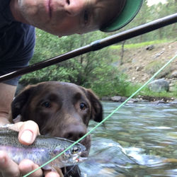 Oregon was like British Columbian and Washington; my first fish came on my first three casts. These are all remote areas, so fishing pressure is light. I drove to the towns of Enterprise and Joesph in search of a latte. I found a movie rental/coffee shop. So cool! Oregon is one of the top 10 places I have ever been to. The towns were interesting; the campsites were perfect, with space to spread out, super tall trees, and a great river. The Imnaha river, even though it is so far east, supports salmon from the Pacific Ocean. Brooke was so thrilled after catching about 14 trout in 30 minutes that she peeled back and forth around the campsite in joy. In dog terms, she was doing zoomies.